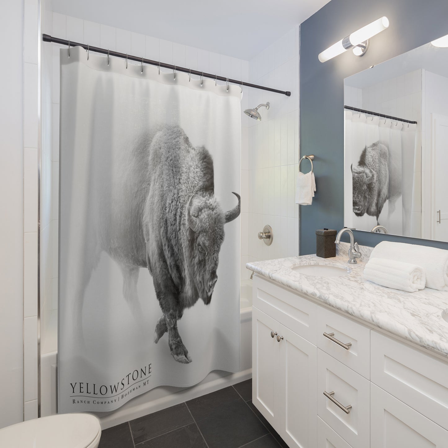 Snow Bison Shower Curtain